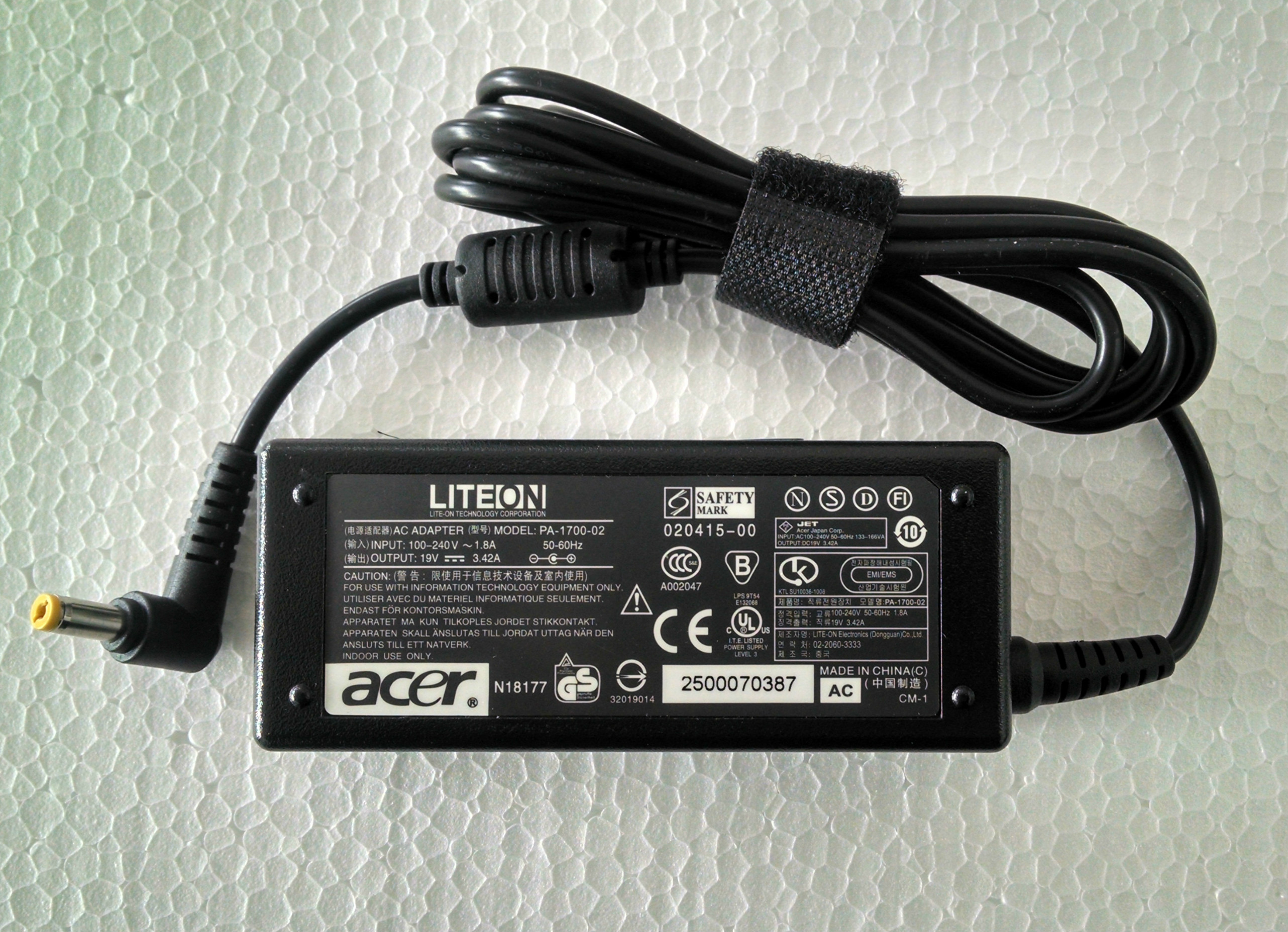 CARGADOR ORIGINAL ACER/LITE ON 19V 3.42A